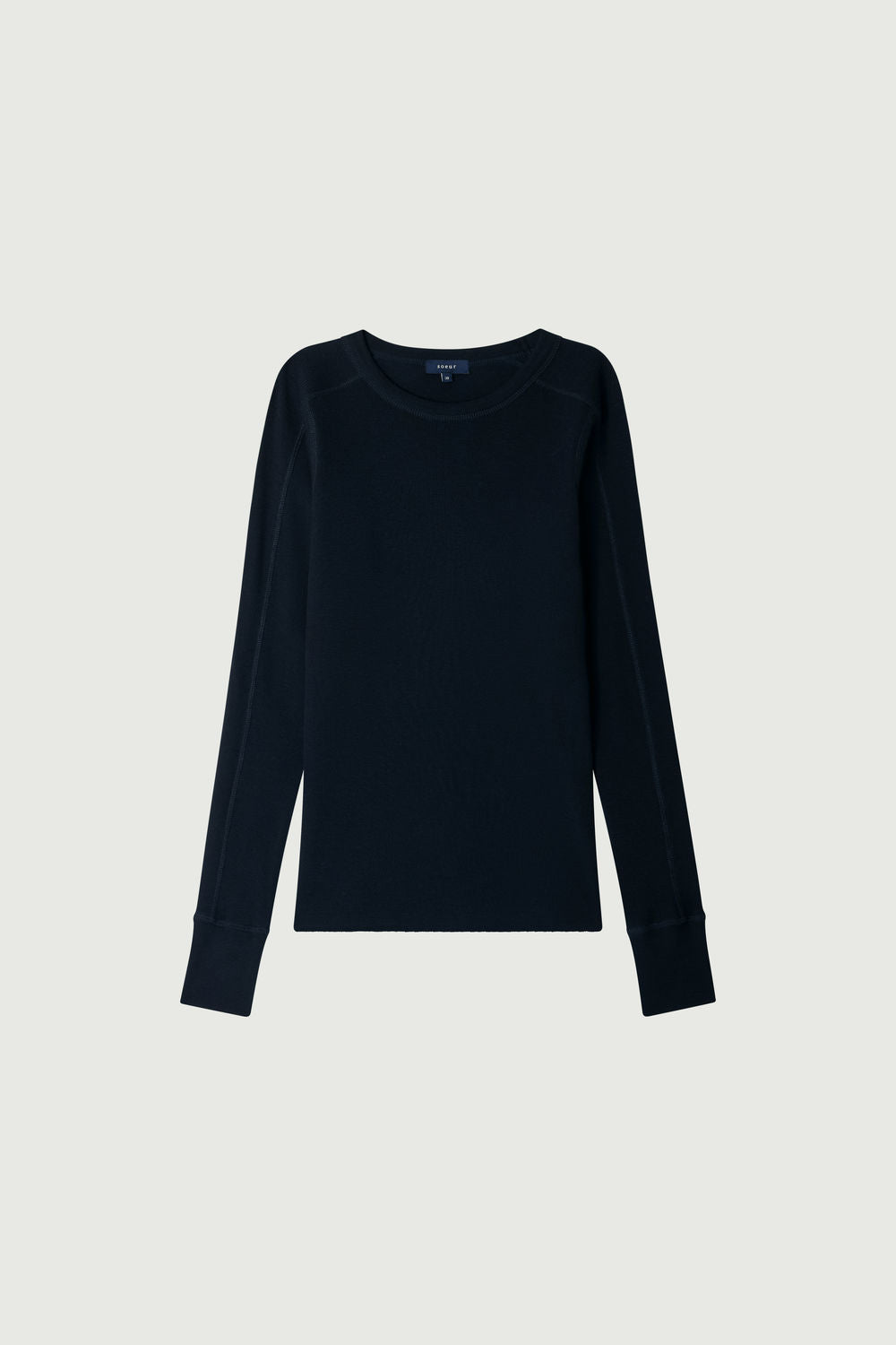 Long-sleeved plain ribbed wool deep navy